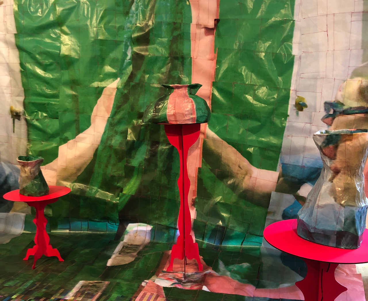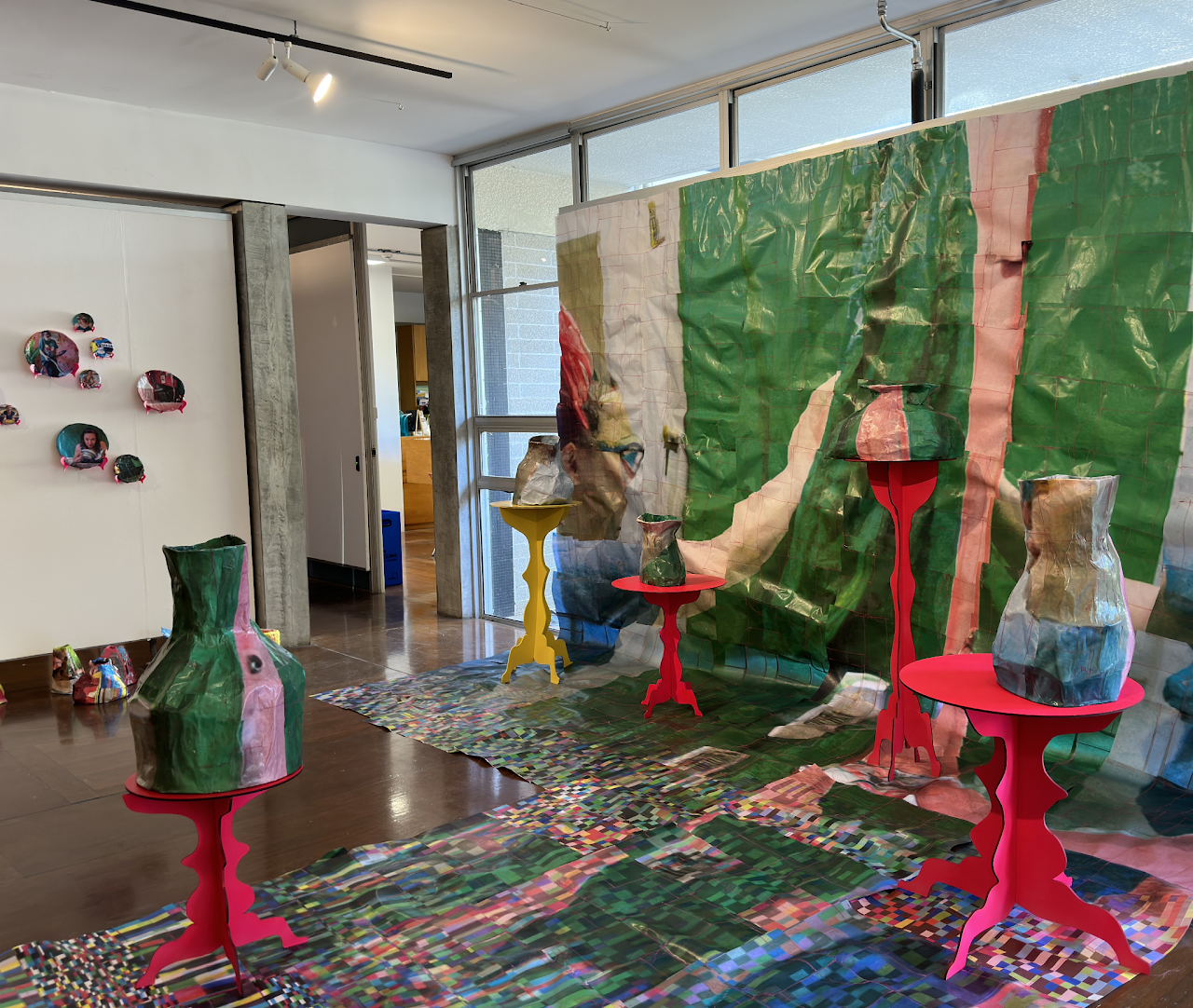 a_picture_of_a_person, 2023, paper, machine stitching, cotton thread, DALLEE-2, papier mâché, plywood, masking tape