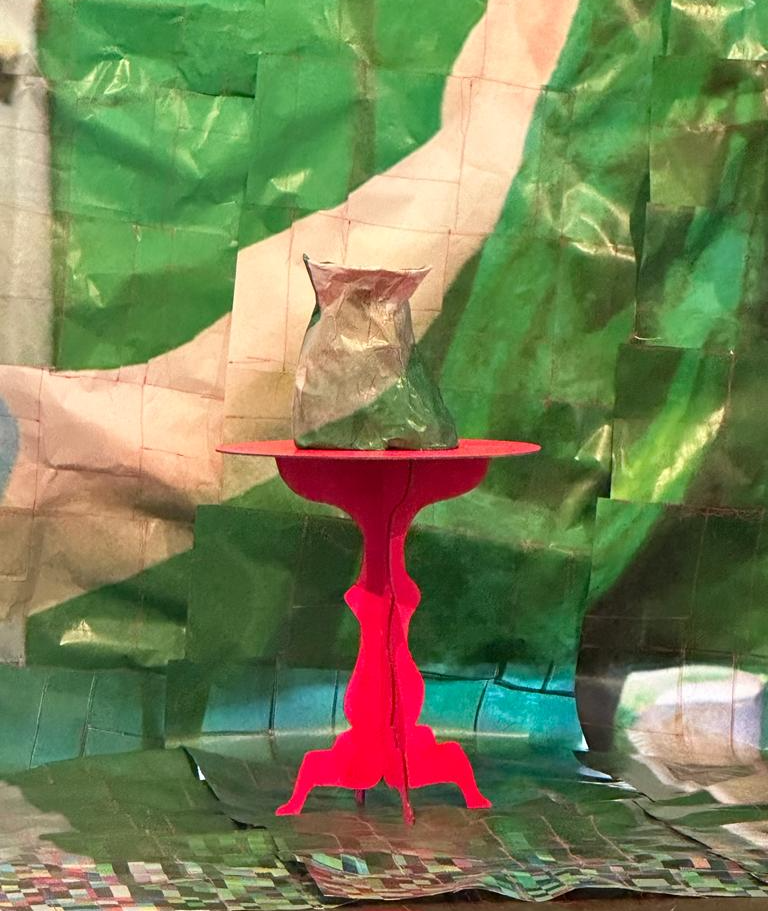 The objects, vases and crockery, epitomise the constructed female-domestic association and its persistent, nostalgic position in collective memory. The objects are divorced from their expected materiality, delicacy, and consistency, creating something that is recognisably strange – mimicking the effect of the uncanny DALL-E2 generated images. Arduous domestic practices make visible homemaking’s implicit labour and comment on the consistent privileging of certain values by current ‘computer vision’.