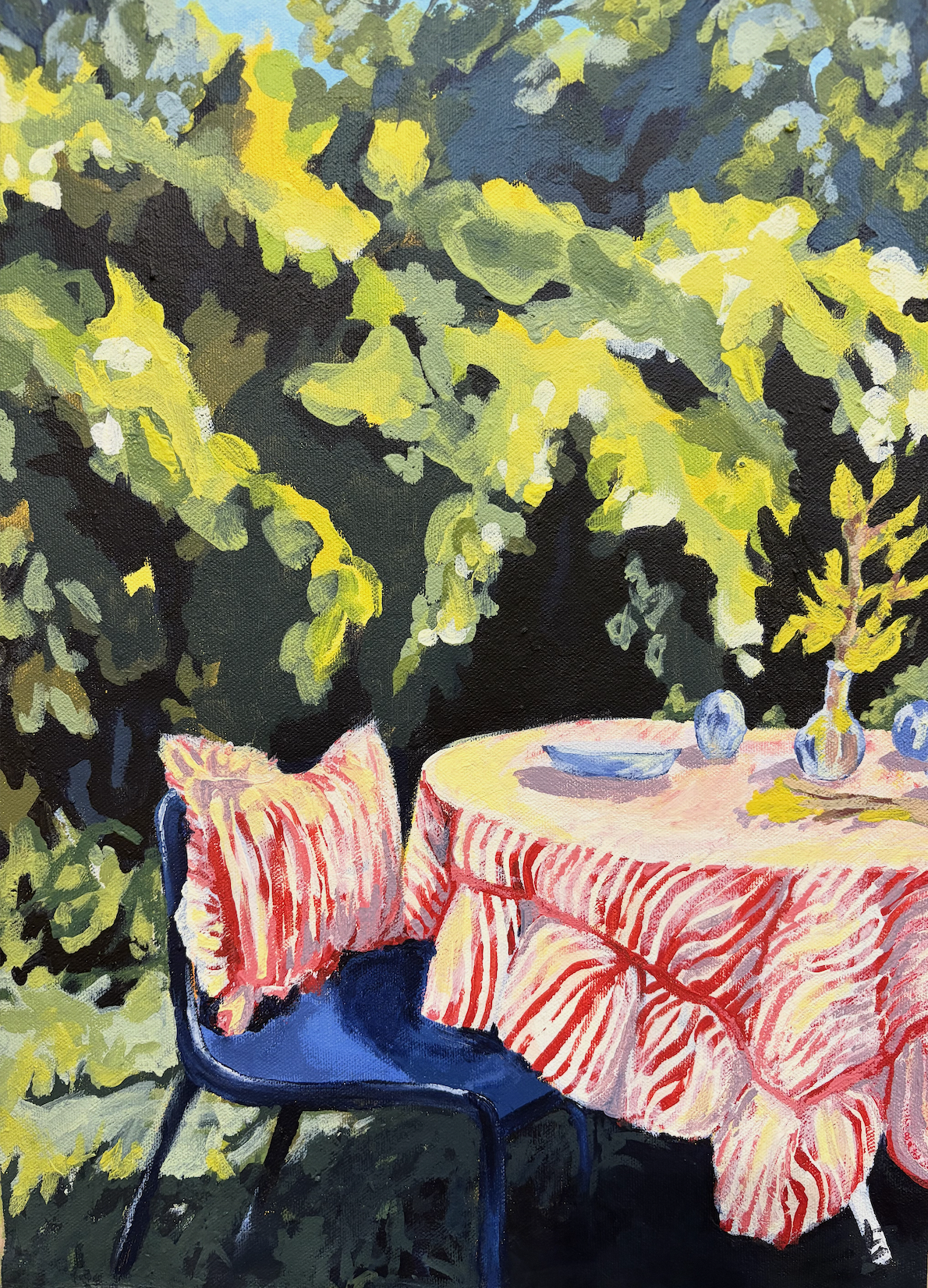 Memory Garden (2025), acrylic on unstretched canvas, 32.5 x 45cm, in the collection of Annalise Nelson